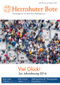 Obwohl die Jahreslosungen nicht von der Brüdergemeine in Herrnhut kommen, sondern von der Ökumenische Arbeitsgemeinschaft für Bibellesen (ÖAB) in Berlin, haben die Autoren des aktuellen Herrnhuter Boten zu diesem schönen Wort vom Glück und der Gottesnähe ein ganzes Heft gemacht. Neben meditativen Texten gibt es einen Zugang von bibelwissenschaftlicher Seite, ein Interview mit teilweise überraschenden Hintergrundinformationen vom Entstehungsprozess der Jahreslosung und einen interessanten Fund zum »Glück« in der christlichen Sprache. Darüber hinaus erfahren Sie viel über das Leben der Herrnhuter Brüdergemeine heute, über Angebote und Veranstaltungen. Das Heft können Sie für 2,60 EUR bestellen bei redaktion-hb@ebu.de |